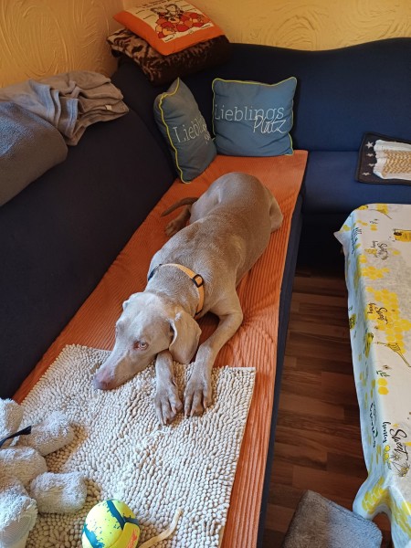Pendant ce temps....bah, chez moi...Rhoxanne prend 3 places sur le canapé !!!